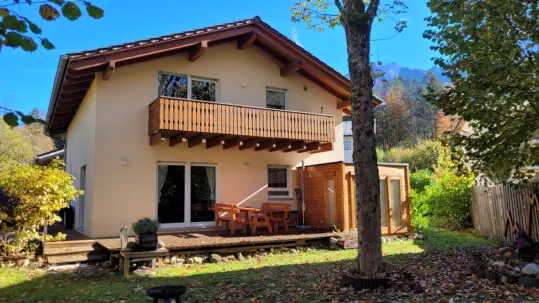 In einem neu erbauten Haus am Ende einer Sackgasse direkt an der Königsee Ache gelegen. Die